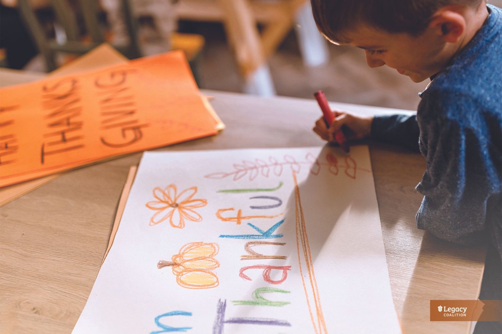 Prior to the meal, you could have the grandkids make placemats for each person in attendance. Then each person writes things they are thankful for on their placemat.